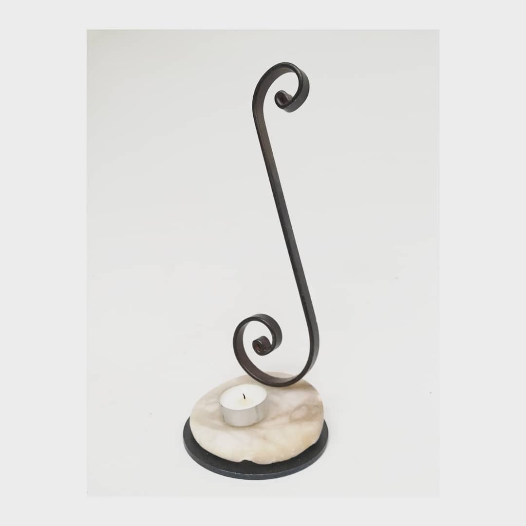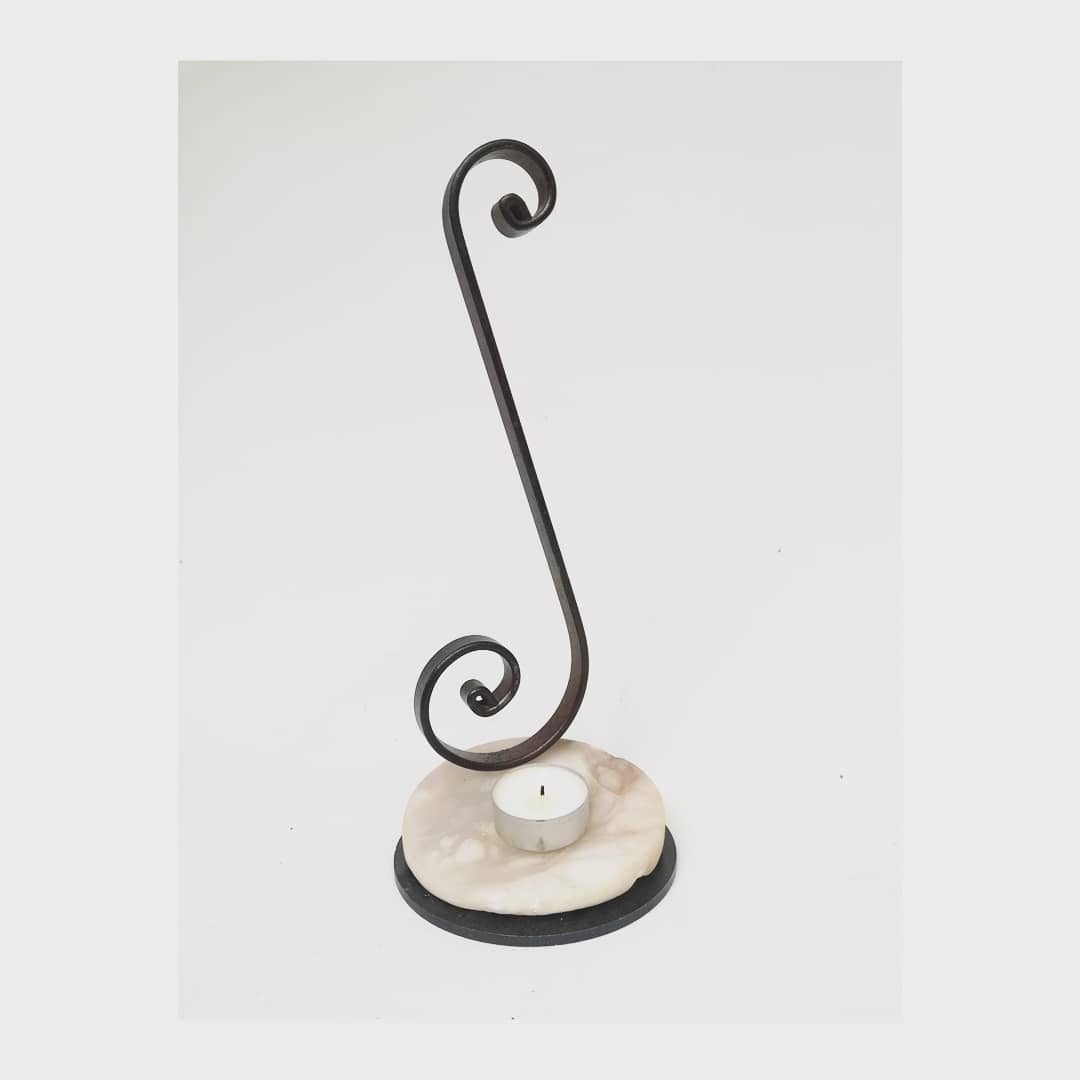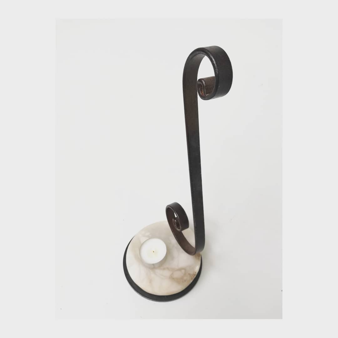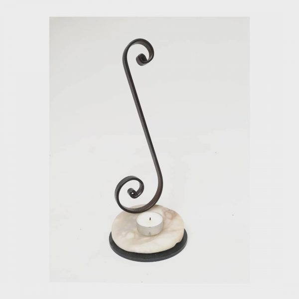 Candelabro de metal forjado con Alabastro Blanco.