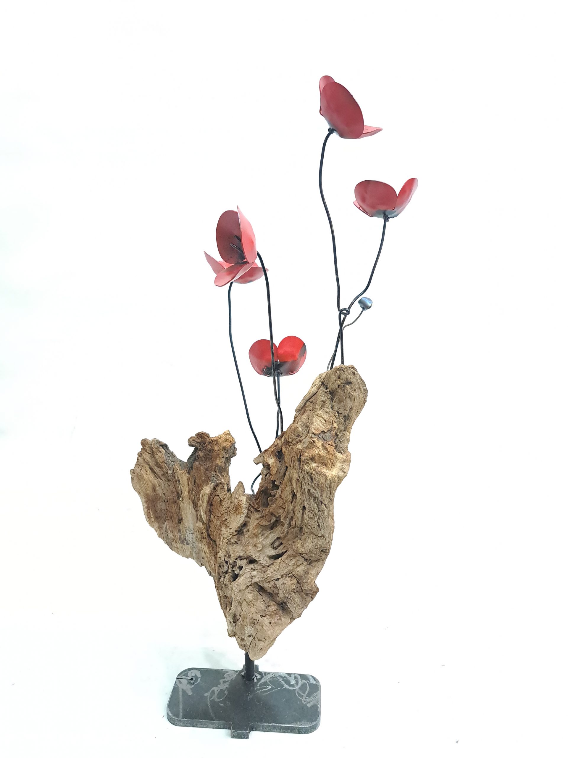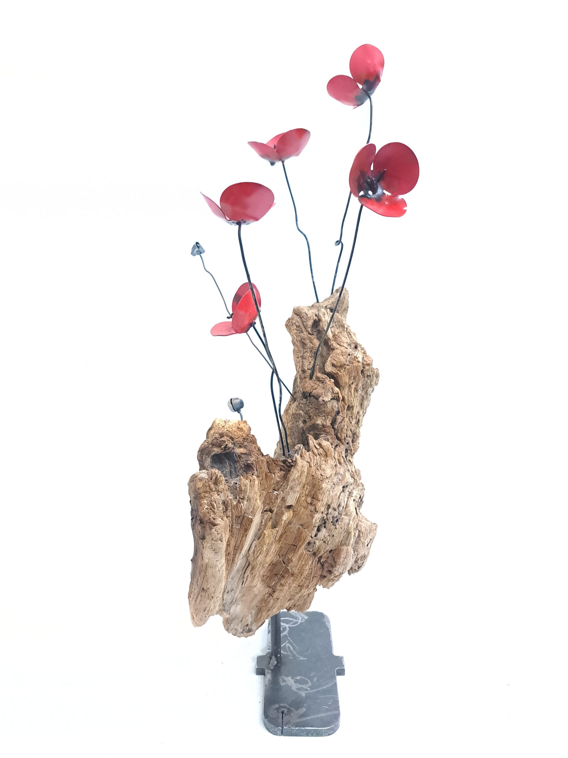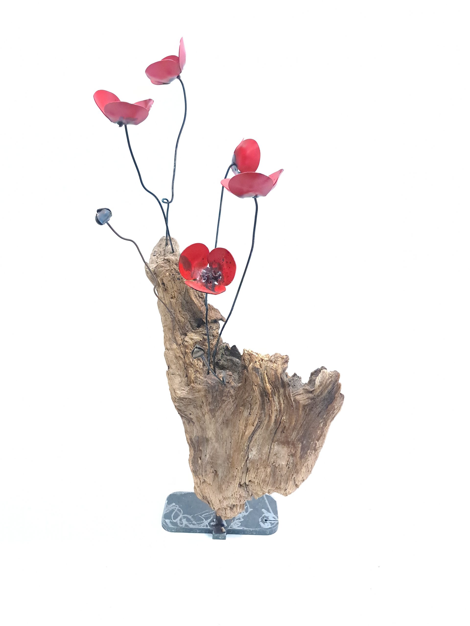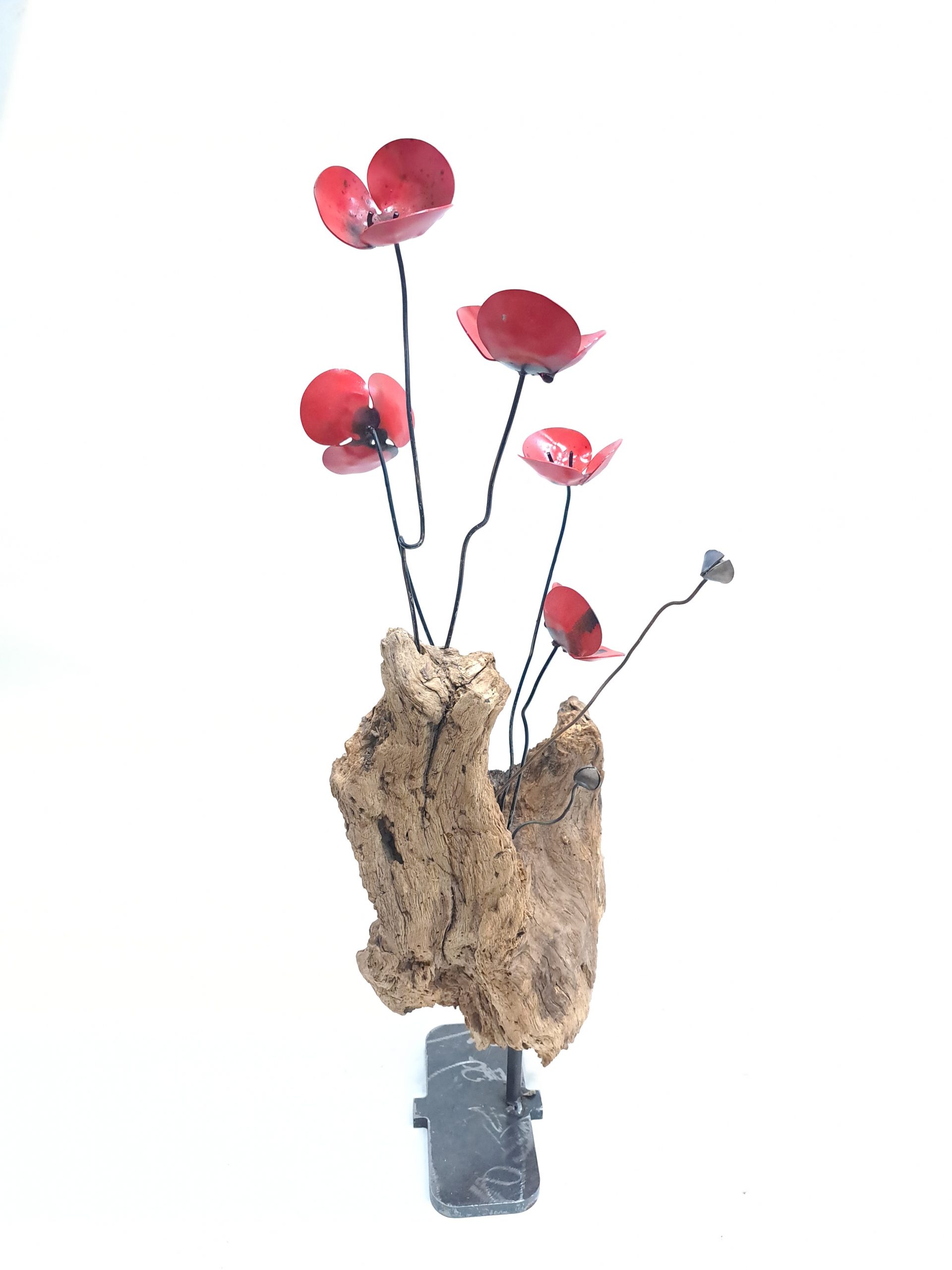 amapola chopo de forja sobre una base de chopoAmapola Chopo