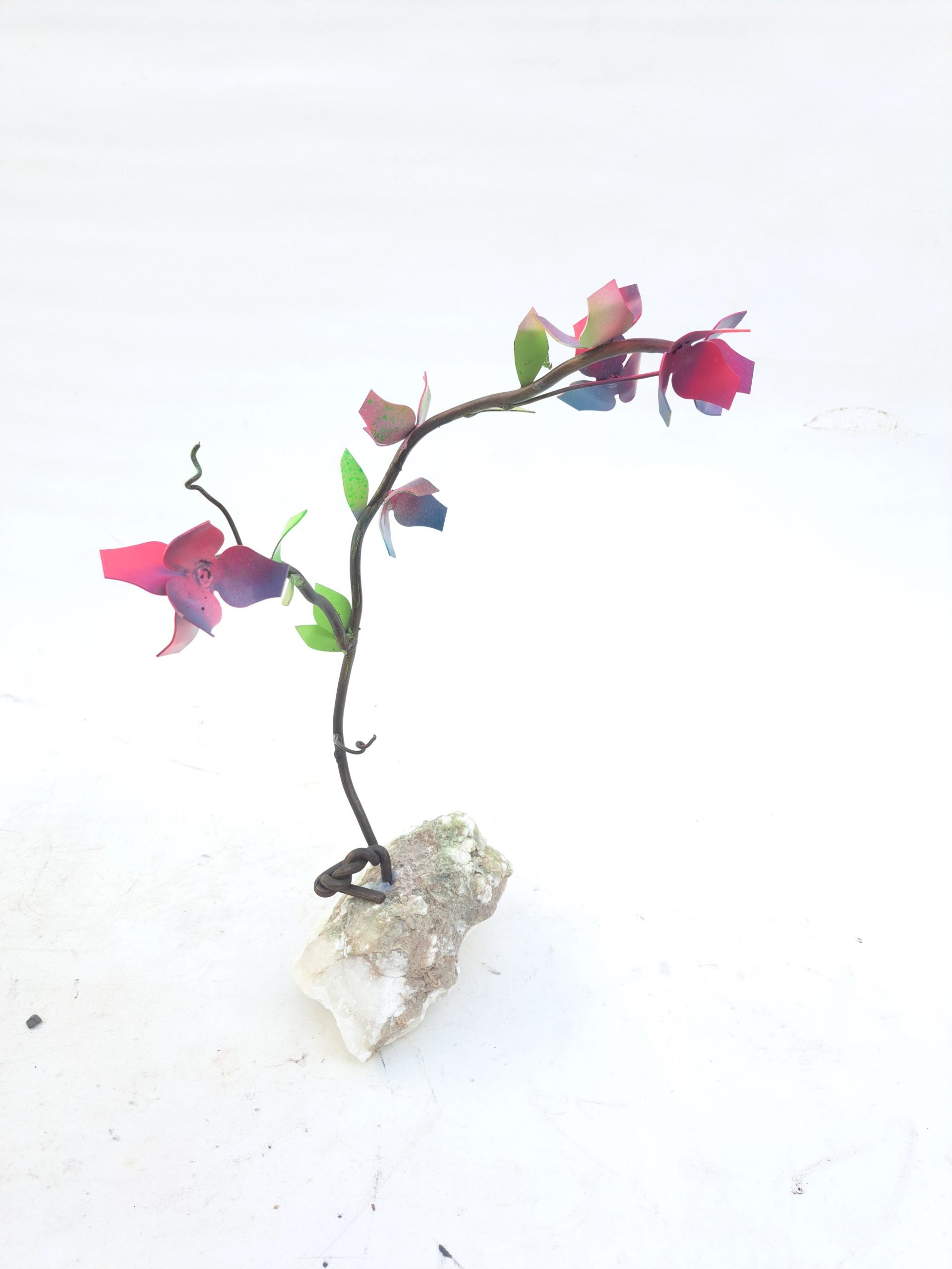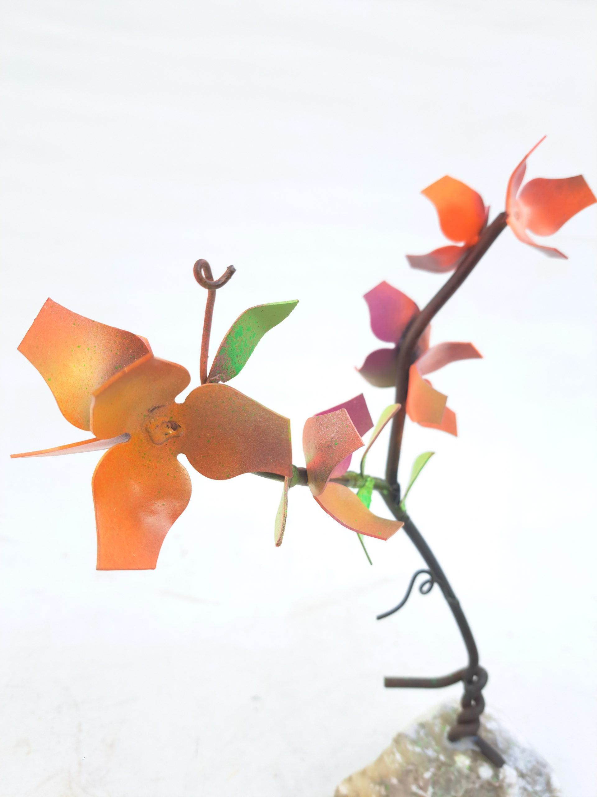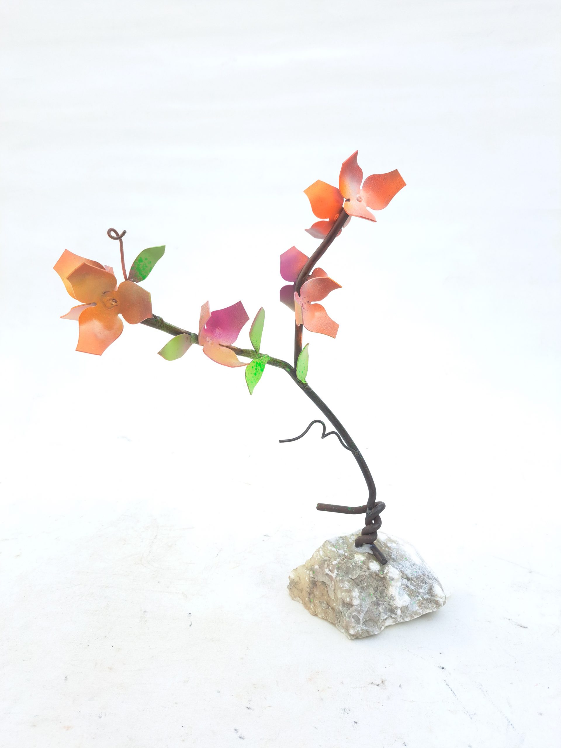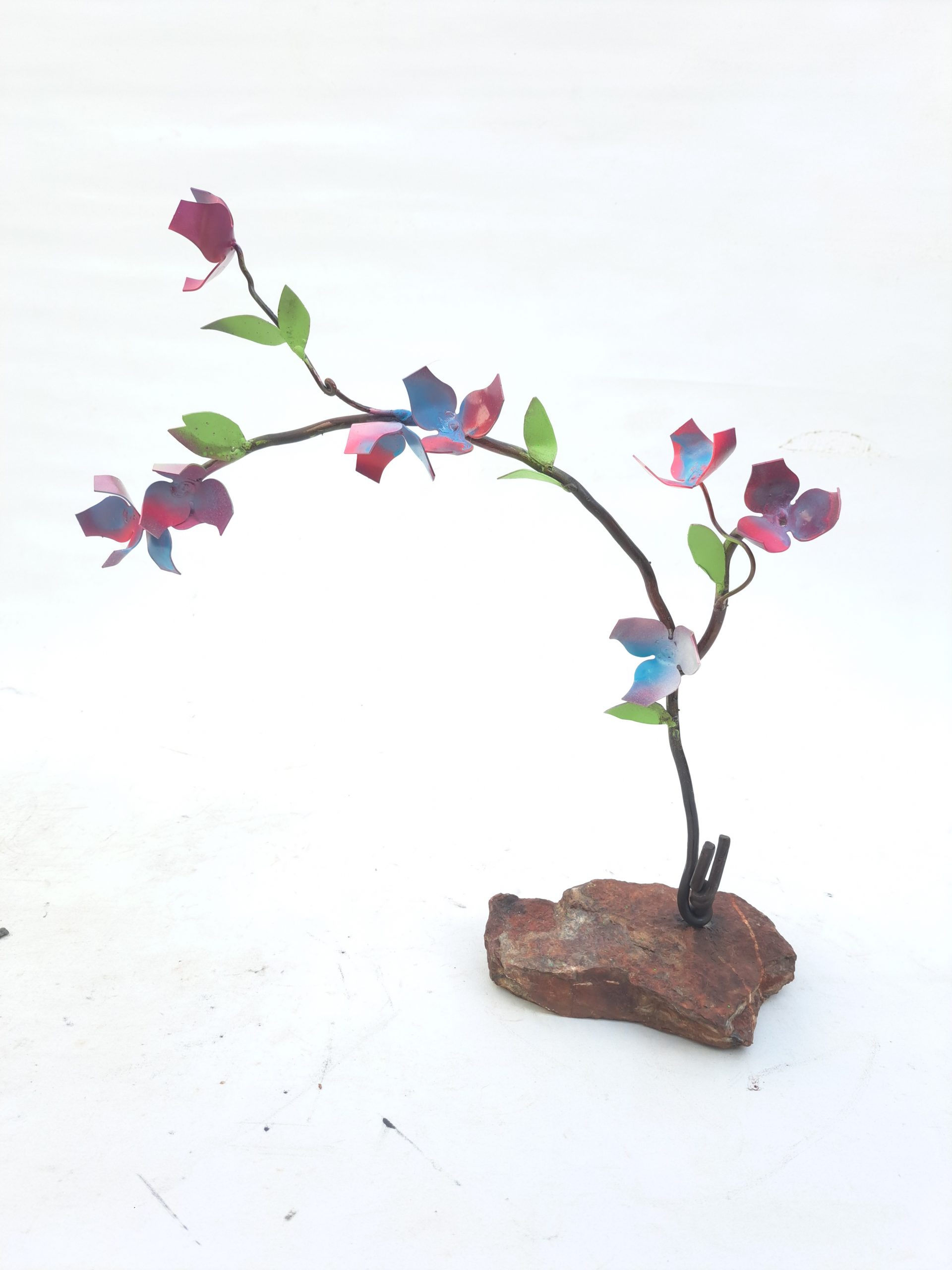 Bonsái de metal y pintado a mano en una base de piedra blanca naturalBonsái pequeño