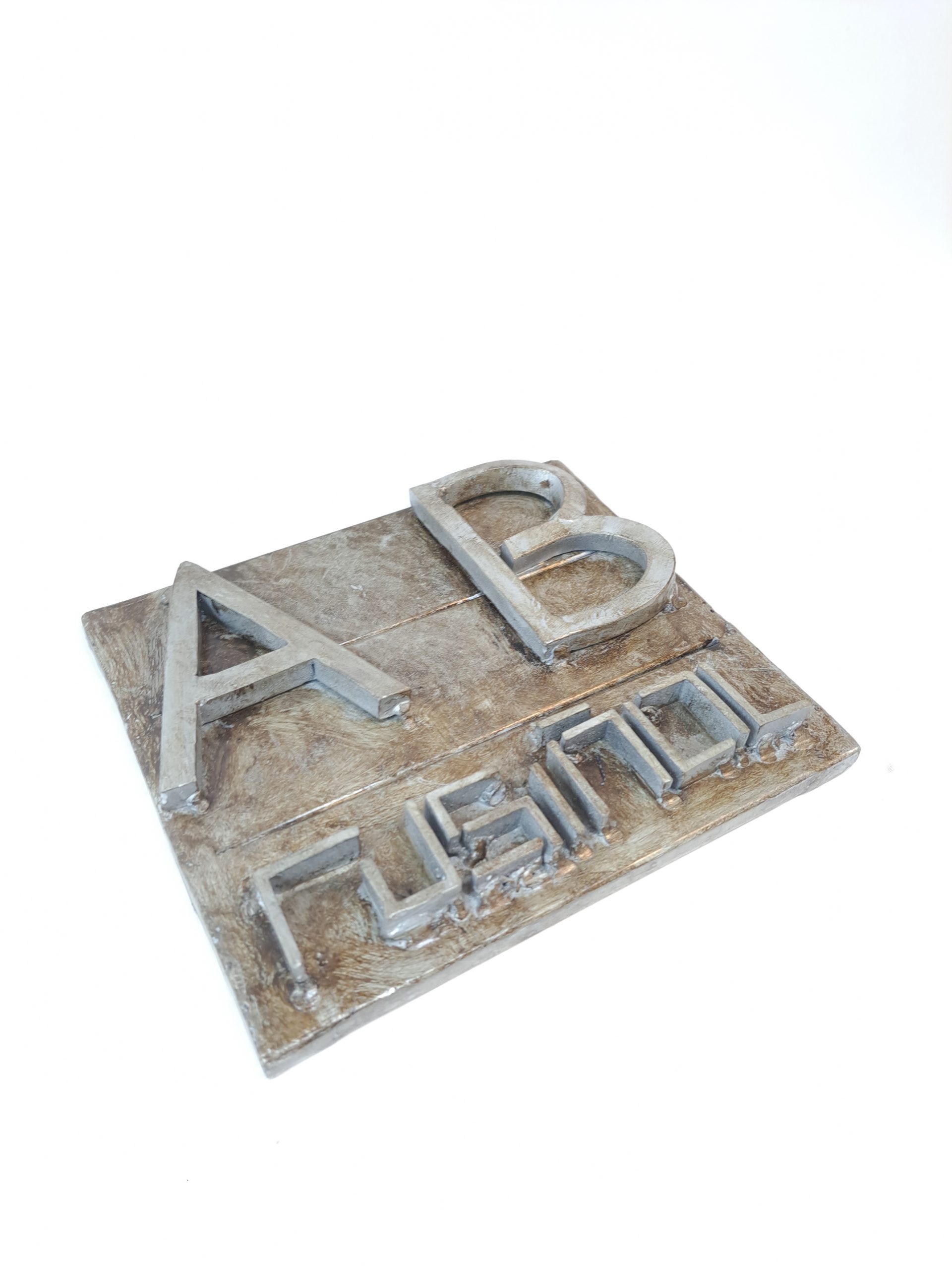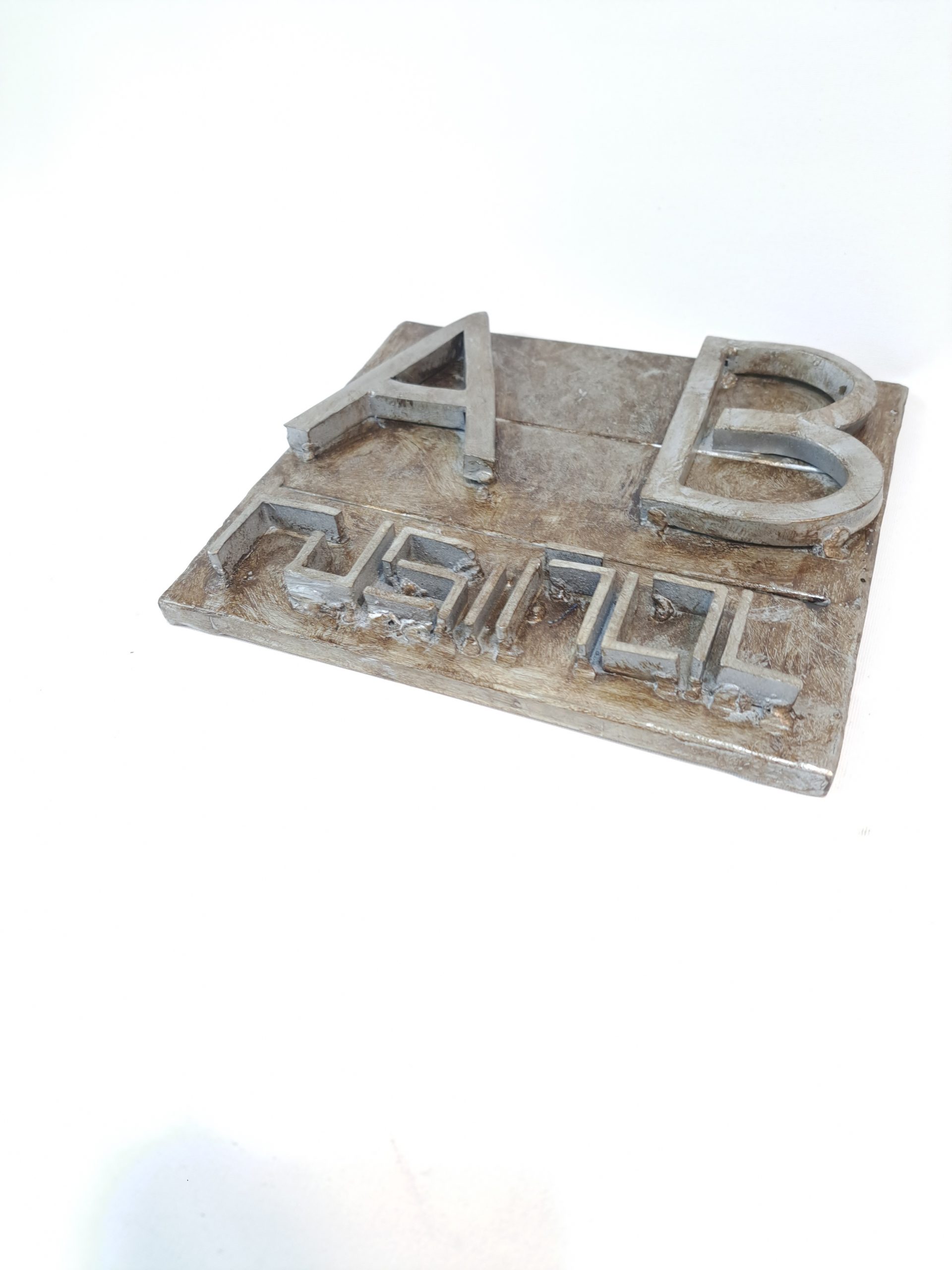 Cartel hecho de metal con los detalles elegidos por los clientes. nombre de la calle, numero de puerta.