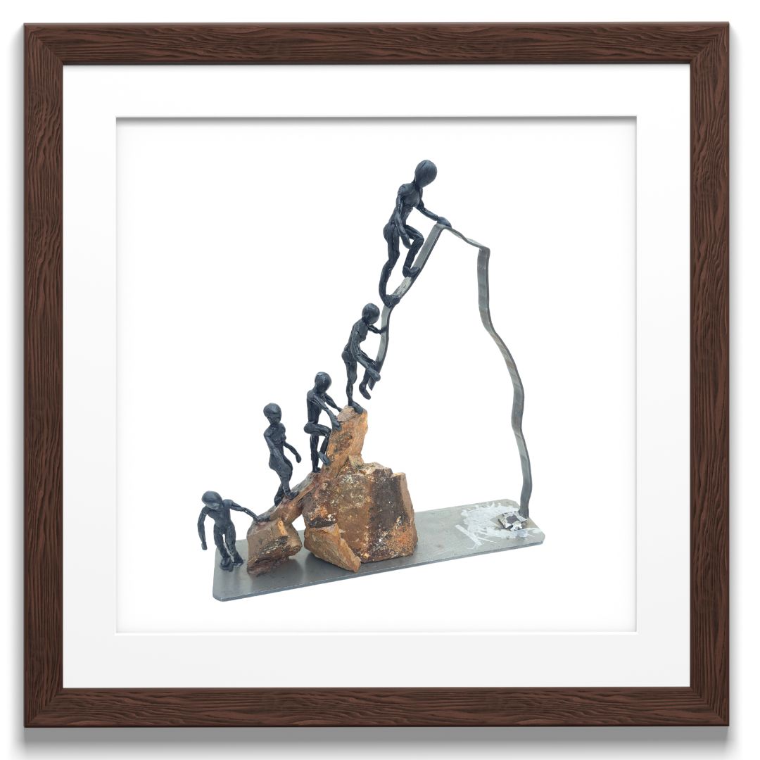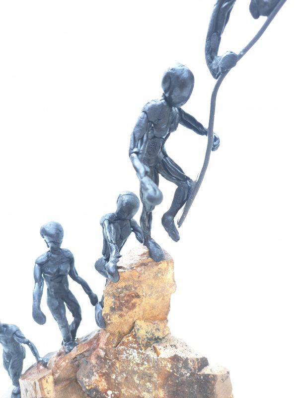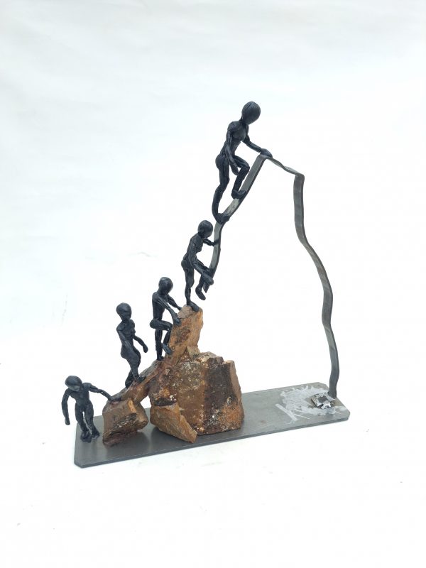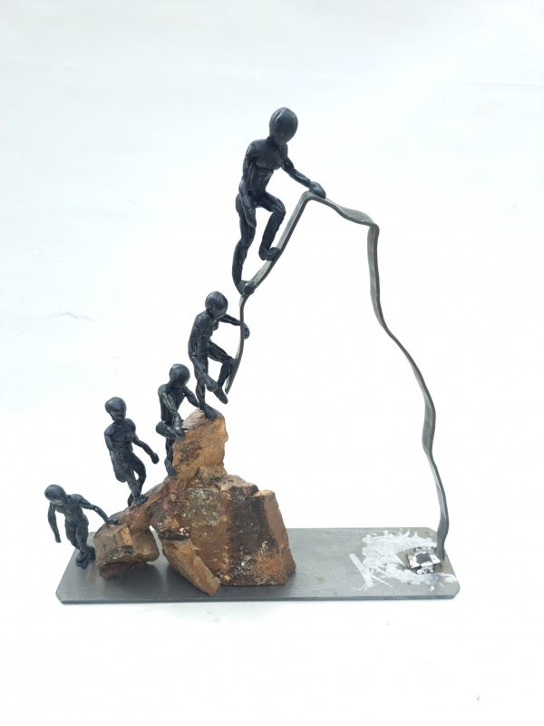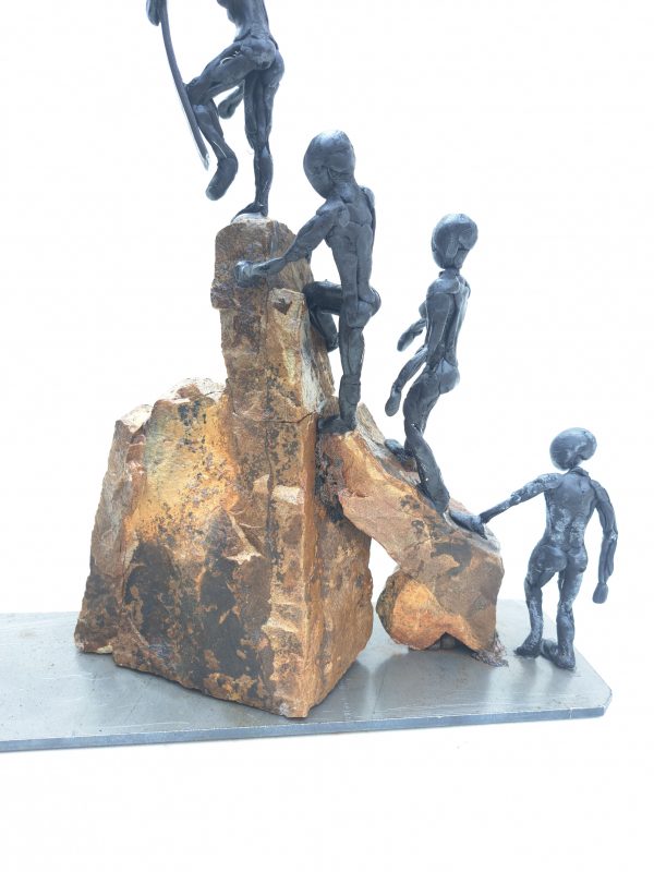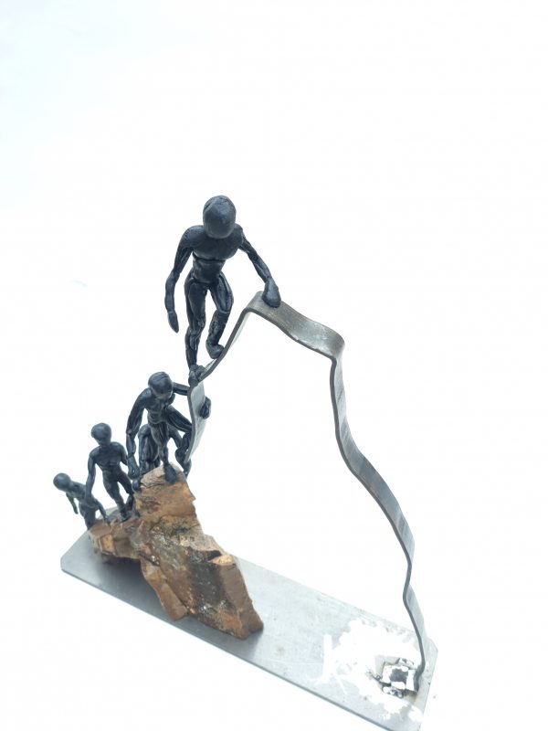 Una escultura mixta (metal, piedra y resina epoxi) que representa más que un paisaje: es un agradecimiento tallado a mano.