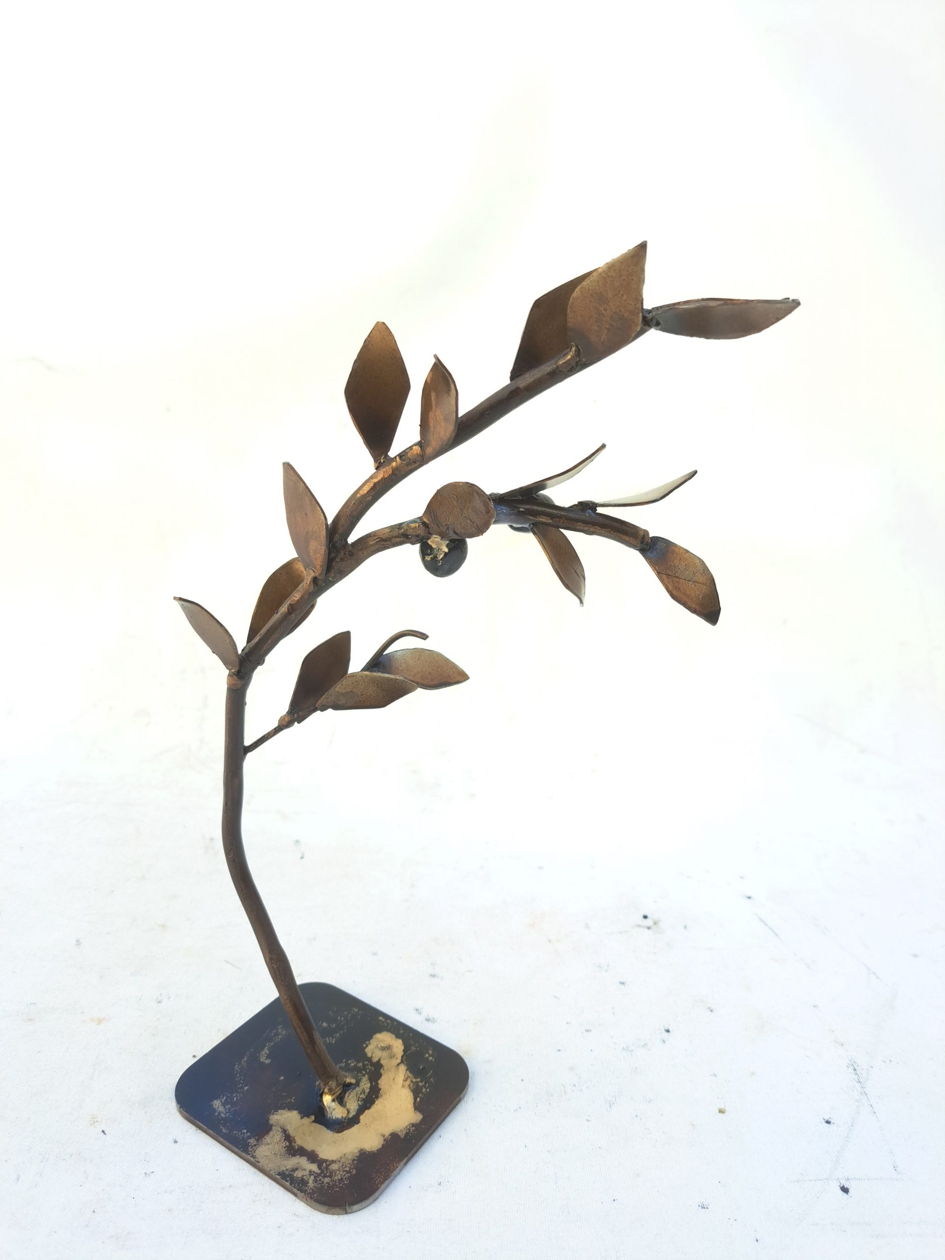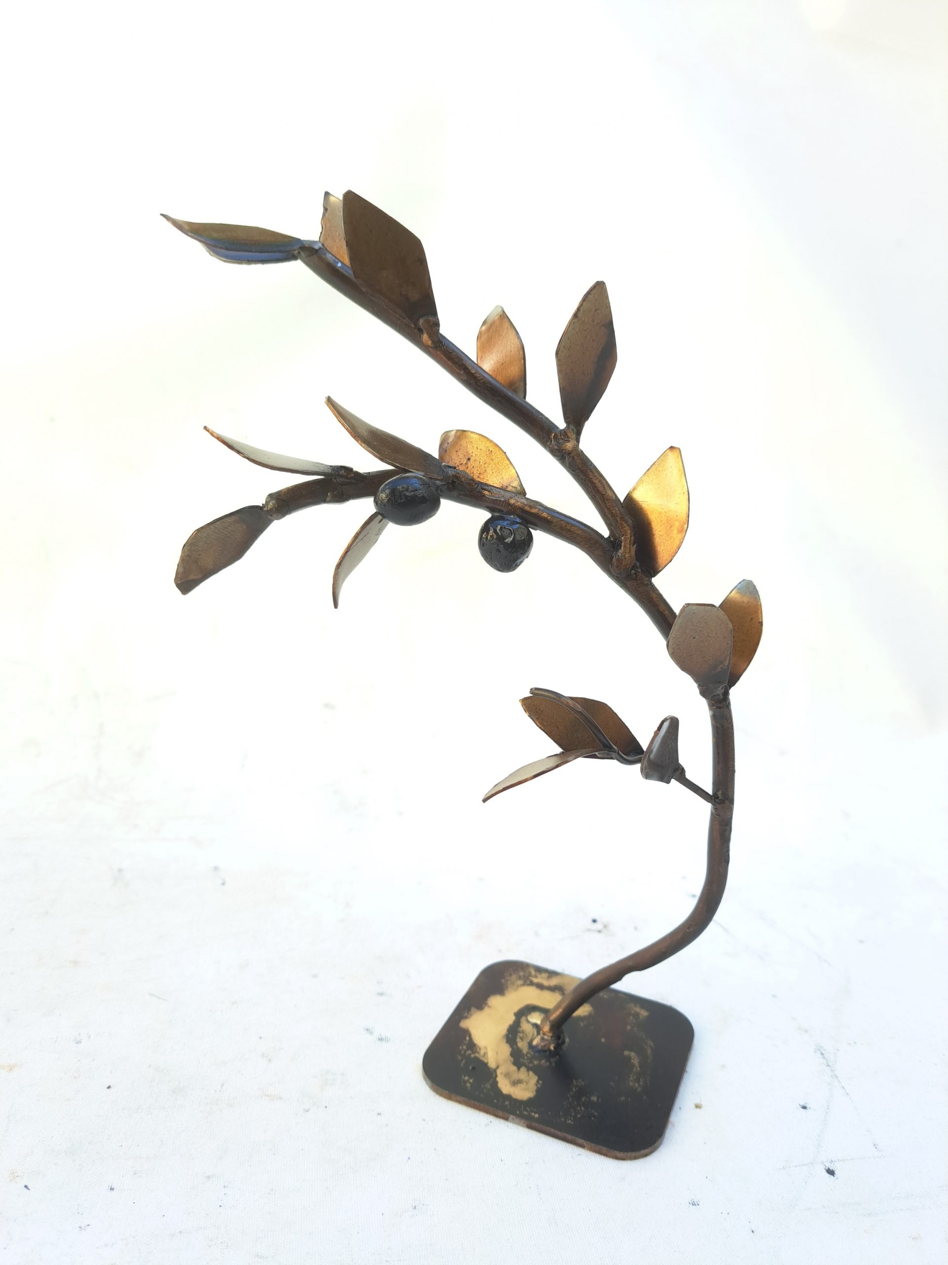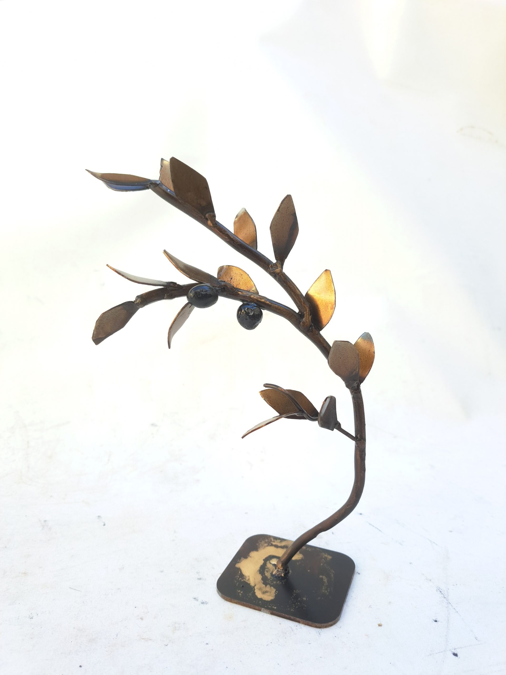 Pequeña escultura de una ramita de olivo hecha en metal y resina epoxy