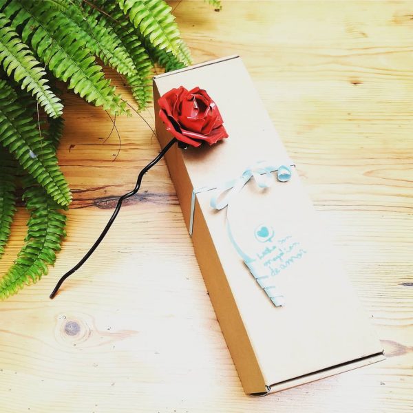 Descubre la singularidad en cada detalle con nuestras Rosas rojas metalizadas. Cada artículo es único y se vende por separado, lo que garantiza que poseerás una creación exclusiva. Con unas medidas aproximadas de 30cm x 8cm x 8cm, esta pieza única es una expresión de arte y artesanía que añadirá distinción a tu espacio.